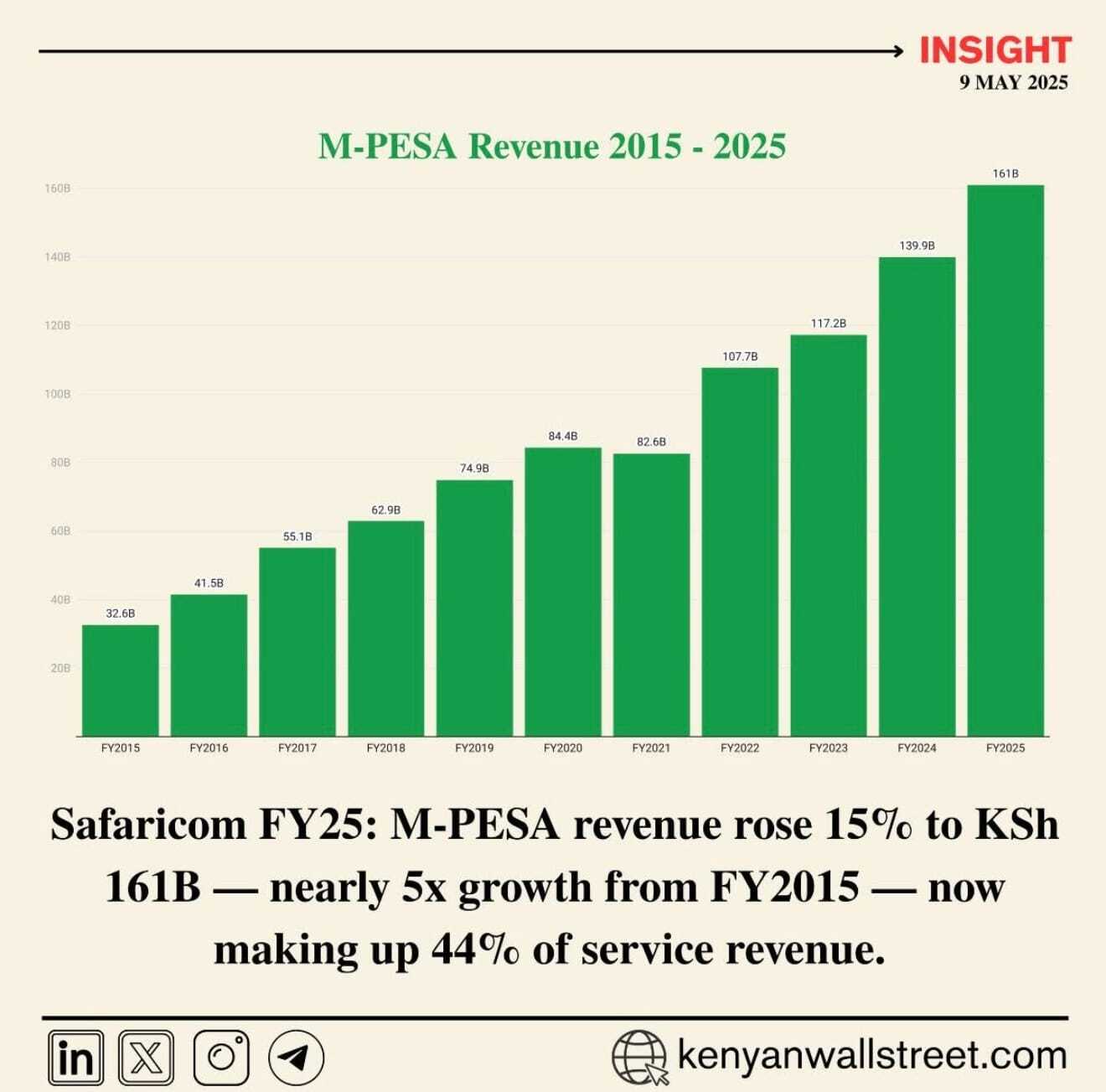 M-pesa now makes 44% of Safaricom’s revenue