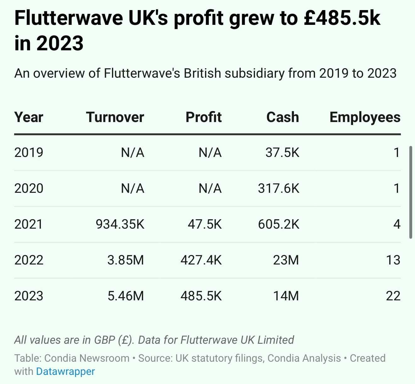 • Flutterwave UK recorded £5.4 million turnover in 2023.