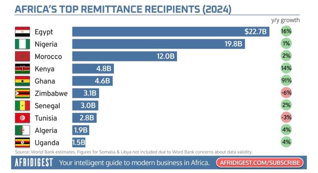 AFRICA'S TOP REMITTANCE RECIPIENTS (2024)