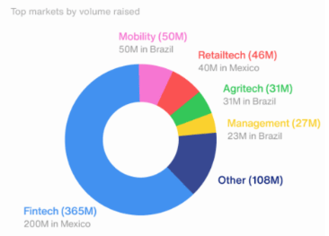Fintech outpaced top markets in terms of fundraising totaling $365.7 million, equivalent to 58% of the total $627.5 million raised by startups in Latam. Latam Startup Activity Report