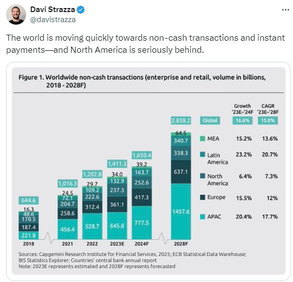 American commerce giant Walmart is rolling out bank payments, which could cut out credit cards – meanwhile, Amazon and Shopify continue to strengthen their own hosted e-commerce checkout solutions, with better sales tools PayPal integrations. and Circle announced that Mexican and Brazilian users will be able to directly swap pesos and reais to USDC via PIX and SPEI.