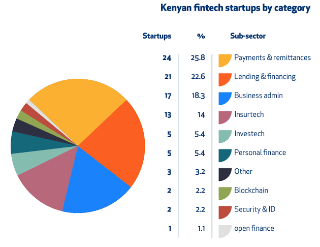 27% of startups in Kenya are Fintechs and 25.8% of Fintechs are payments companies