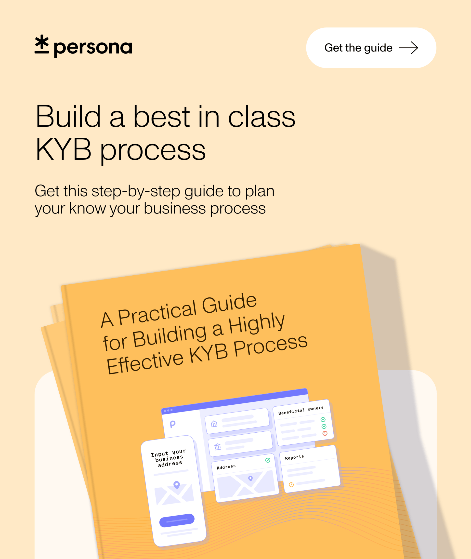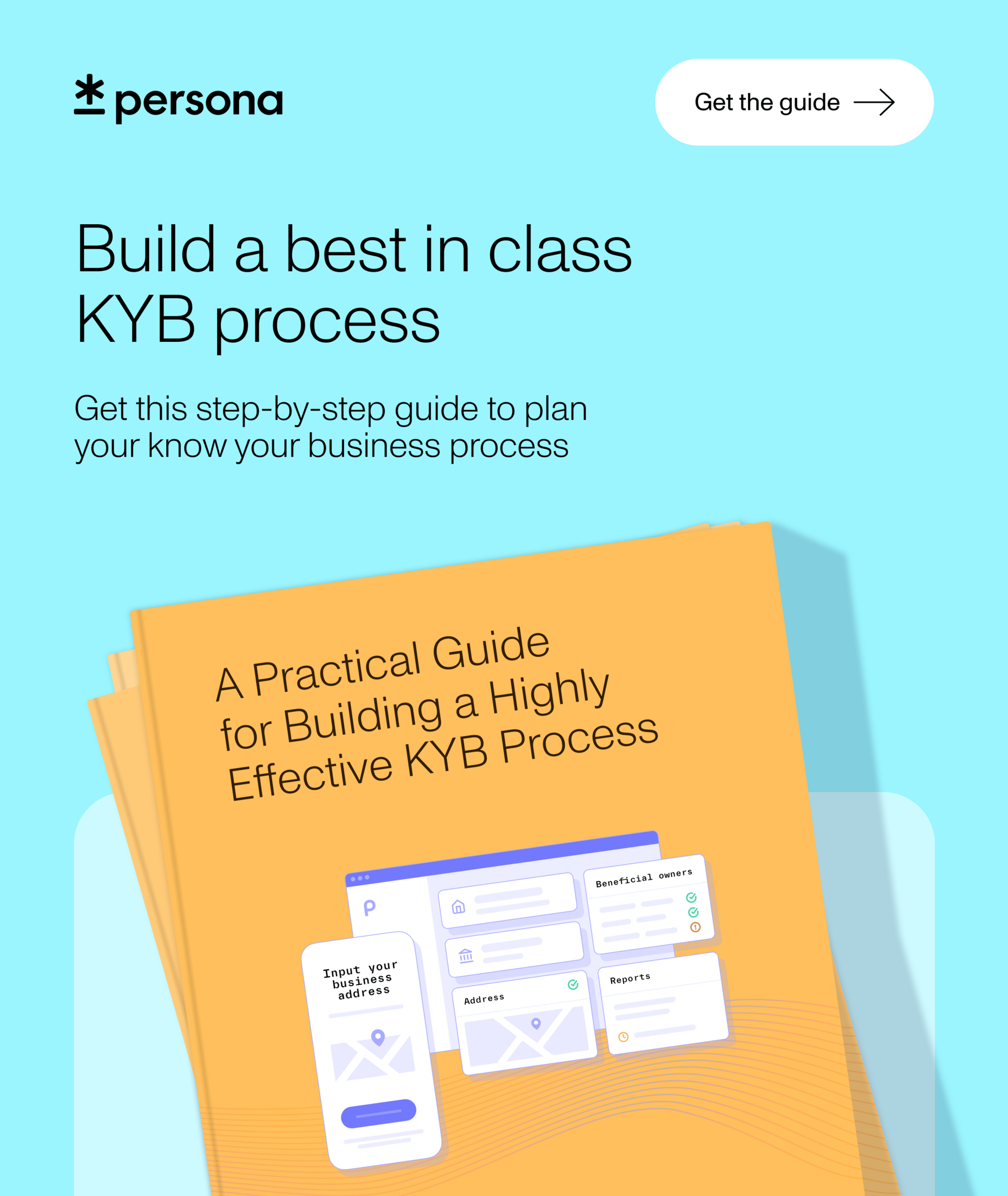 Manual Know Your Business (KYB) processes slow down onboarding and open the door to fraud. Download Persona’s latest guide to learn how to modernize your KYB and KYC workflows to onboard users faster, stay compliant, and build trust. Download the guide today.