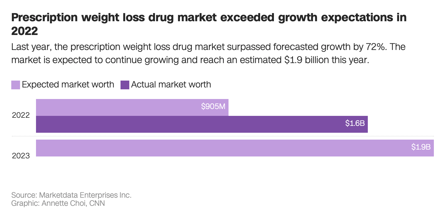 Ozempic prescriptions in the U.S. reached an all-time high in the last week of February, with over 373,000 prescriptions filled, according to a J.P. Morgan analysis of IQVIA data shared with CNN. That’s an increase of 111%, compared with the same time last year. Of these, more than half were new prescriptions, CNN said.