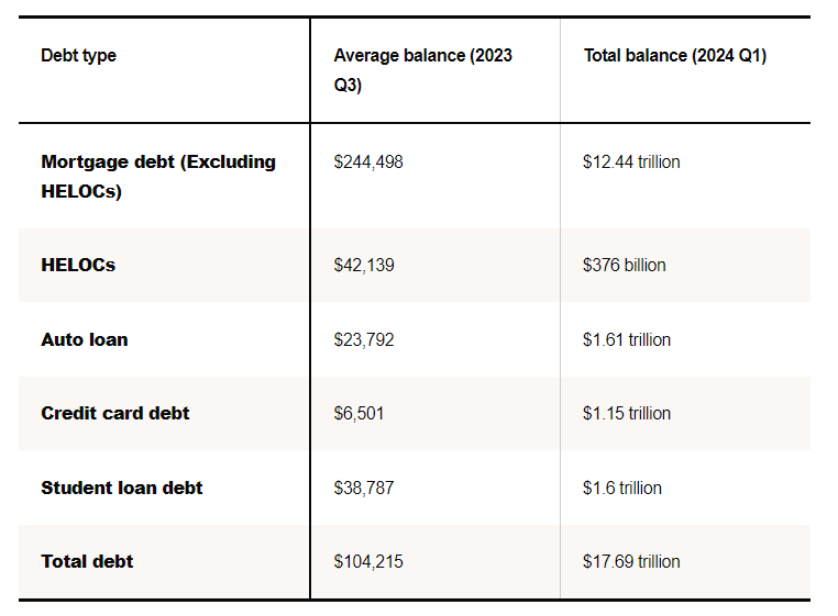 Average and total consumer debt balances in the US (Experian & Federal Reserve):