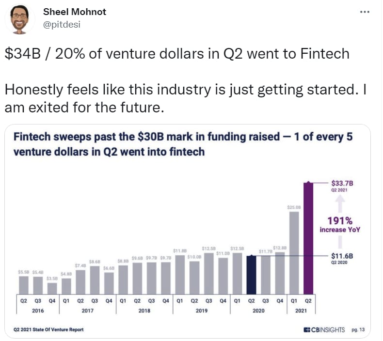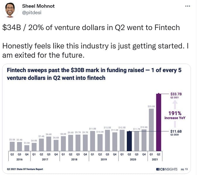 It’s not just fintech: 2021 feels like a frenetic year for private transactions and exit events across the board. Volumes and prices are up universally throughout tech. In fintech, coupled with a busy early-stage investing ecosystem, the uptick feels especially pronounced.