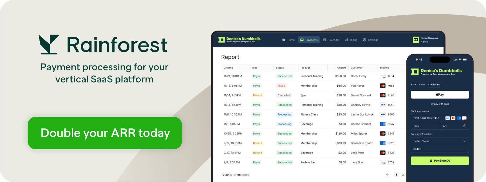 Vertical SaaS companies can double top-line revenue by adding payments, but most payment providers aren’t optimized for truly embedded payments. Rainforest helps software companies drive payment volume and revenue with high-touch support, superior merchant experience, and platform-friendly terms. Find out if you’re missing out on payments revenue