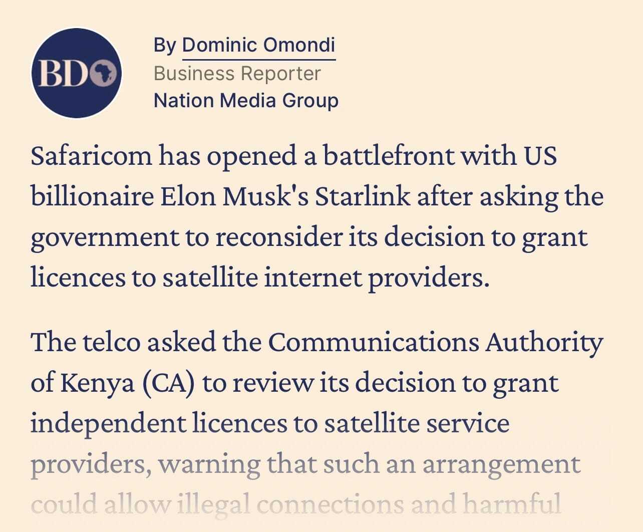 If you compete in other areas, they will do whatever it takes to stop you. Recently, Kenya’s telecom operator, which owns the largest mobile money service, asked the Communications Authority of Kenya (CA) to review its decision to grant independent licenses to satellite service providers, warning that such an arrangement could allow illegal connections and cause harm.