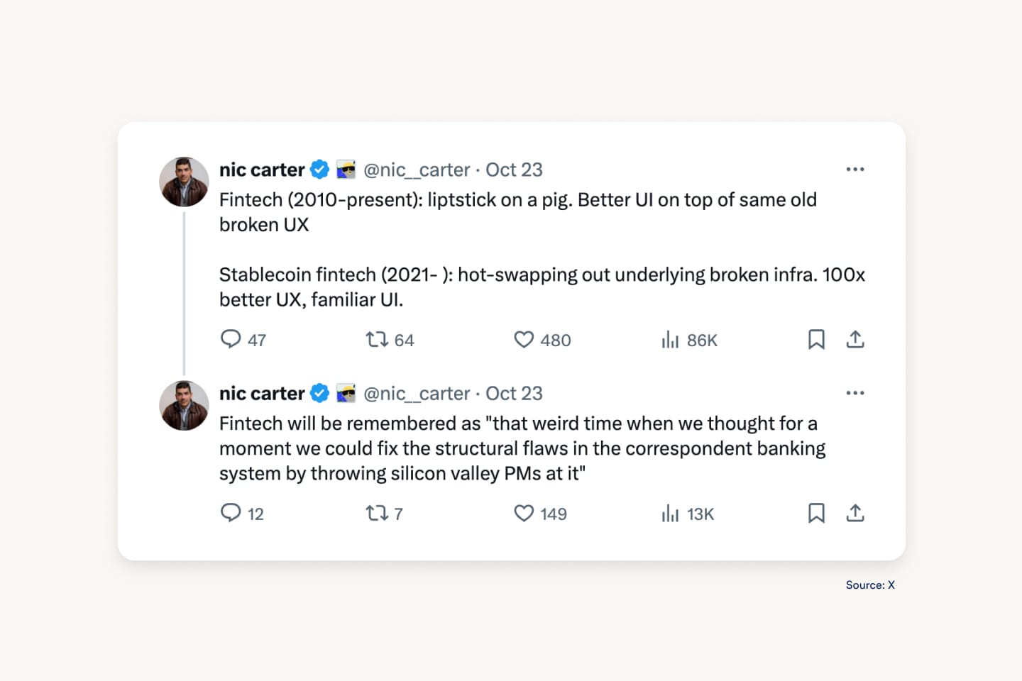 Fintechs are adopting stablecoins because they’ve realized that the rails they operate on are inefficient.