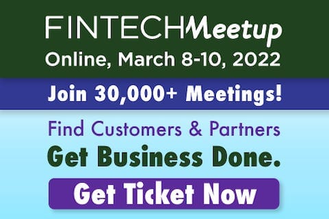 Finding new partners and filling your pipeline just got easier! Fintech Meetup is facilitating 30,000+ 1-1 meetings for 3,000+ industry professionals--it’s the most efficient way for you to create opportunities for your business. All meetings are double opt-in (you both swiped right!) so there’s no wasted time, and 63% of participants are EVP, SVP, VP-Level and above, so you know you’ll be talking to the right people. Online, March 8-10, qualifying startups can get special startup rate tickets. Get Ticket