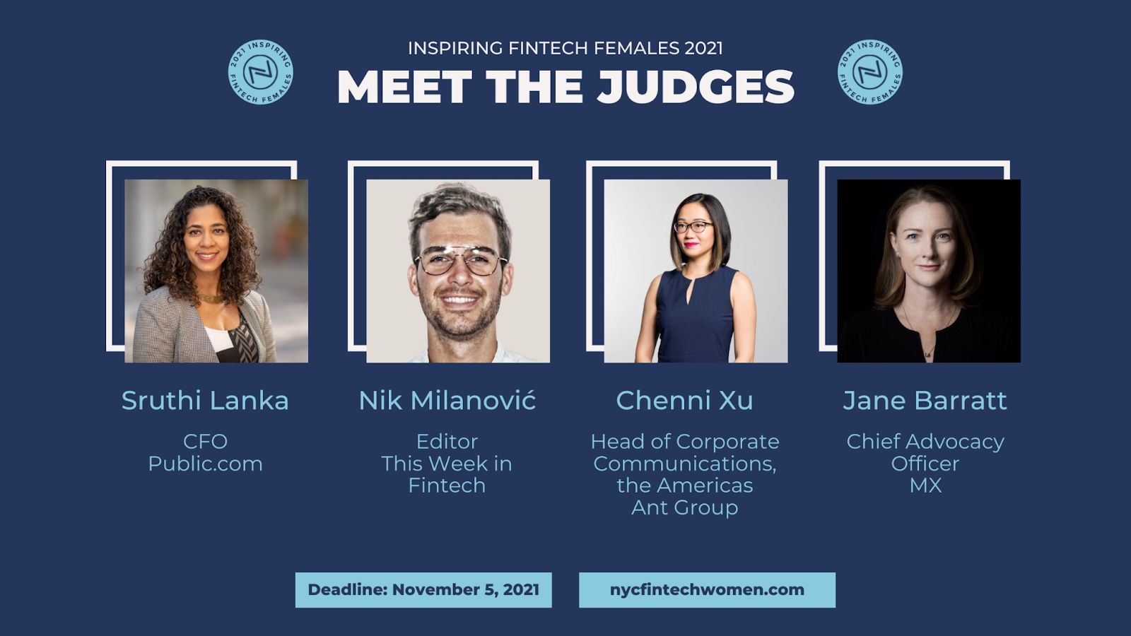 NYC Fintech Women is now open to submissions for the Inspiring Fintech Females 2021 list! The deadline to submit is November 5th. If you know an inspiring woman in fintech (I hope you do…) please nominate her!