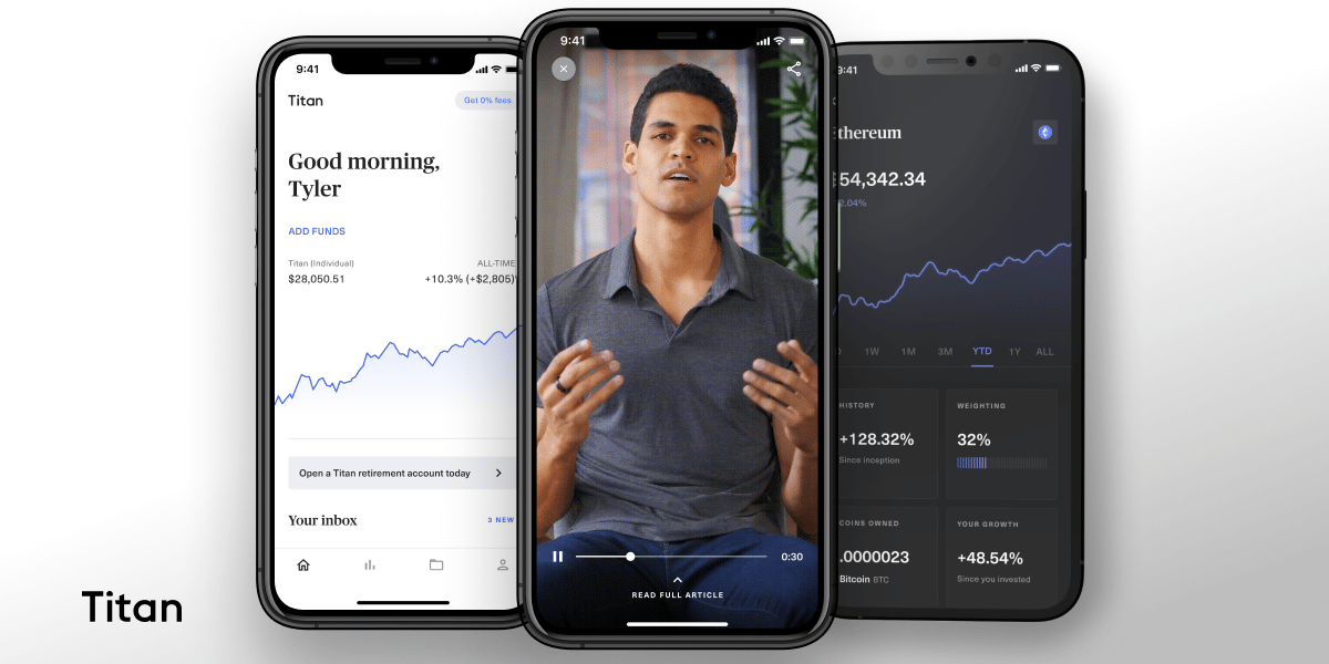 ETFs and Mutual Funds are VHS tapes. When you invest with Titan you'll own a concentrated portfolio of stocks in a separately managed account, and an investment thesis for each holding. We think it's important to know what you own vs. looking at a laundry list of opaque ETFs in a robo-investing app or your old 401K. In addition to 3 equity portfolio options, Titan recently launched Titan Crypto; the first actively managed crypto portfolio for everyday U.S. investors. Get invested in just 5 mins.