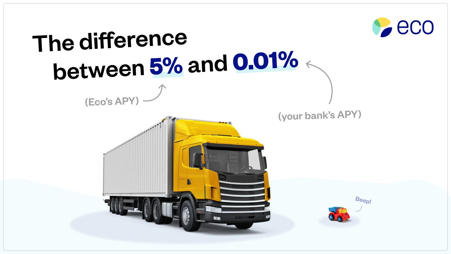 Visualizing value is tough. Sometimes you just can’t picture exactly how much you’re getting screwed. At Eco, earn market leading cash back for spending and up to 5% APY rewards on your balance.