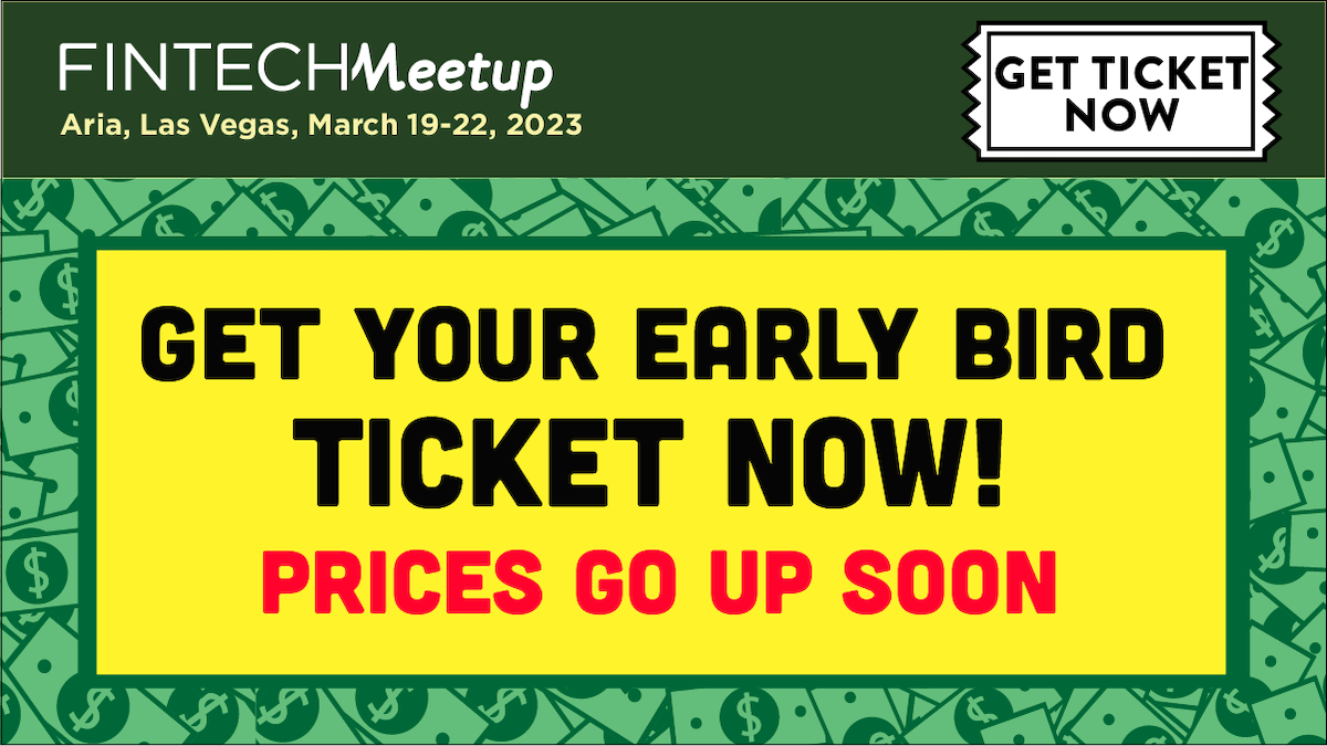 Fintech Meetup Registration is now open! Get tickets at the lowest rate we’ll offer! We’ve got the world’s best meetings tech platform – we’ll facilitate 30,000+ in-person meetings at our event (March 19-22 at the Aria, Las Vegas). Our tech works and the proof is in the pudding: The past 2 Fintech Meetups (both were virtual events) facilitated over 50,000+ meetings. First 100+ speakers just announced - See the list here. Get your individual or bulk tickets now before prices go up. Click here to register.