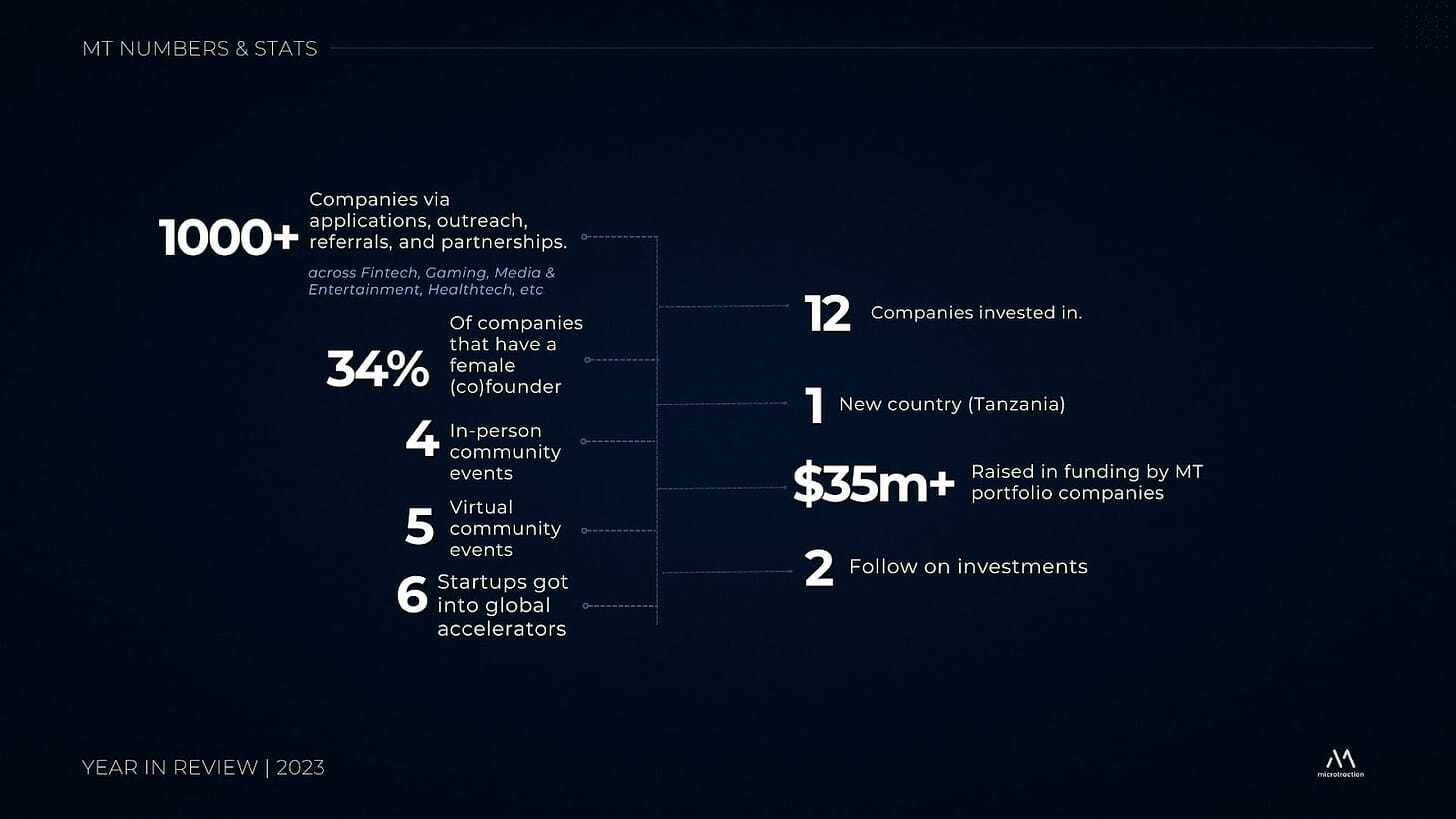Microtraction backed 12 companies in 2023, it’s portfolio grew to 67 companies with a combined valuation of $813 Million.