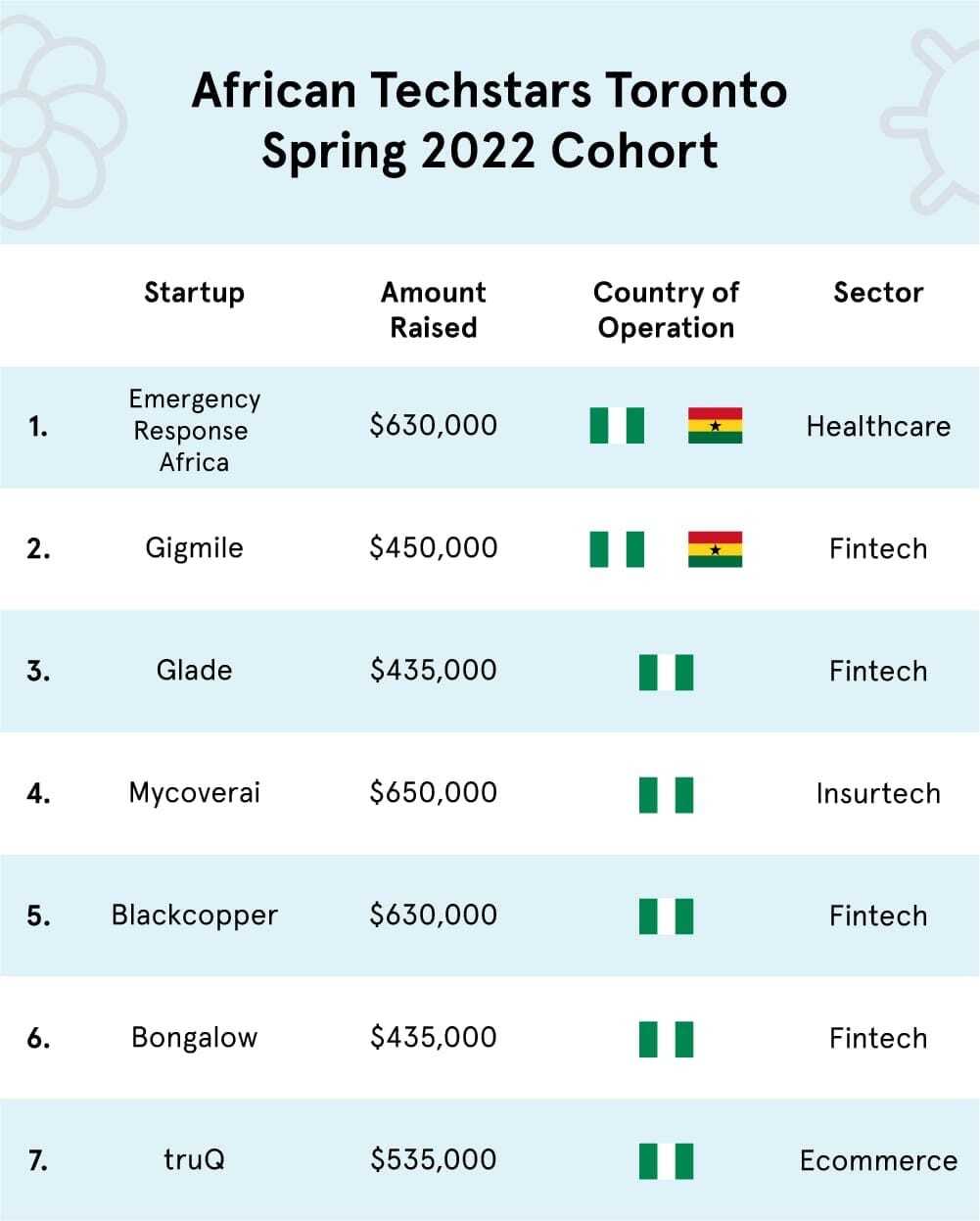 The list of some of the other African tech startups backed by Techstars in previous cohorts.