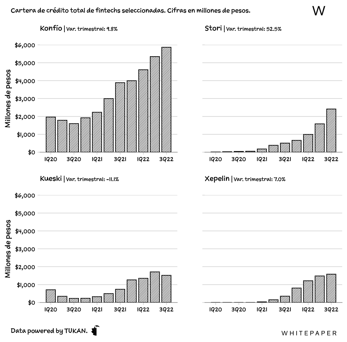 Stori reported an advance of 52% compared to Q2,and 3.7x the portfolio registered in 3Q21. Portfolio default is close to 14%. Konfío, brought its portfolio +10% vs. Q2, and +51% vs. 3Q21. Default is close to 3.4%. As context, Banco del Bajío's credit portfolio for SMBs is $35 billion pesos, with a delinquency rate of 2%.