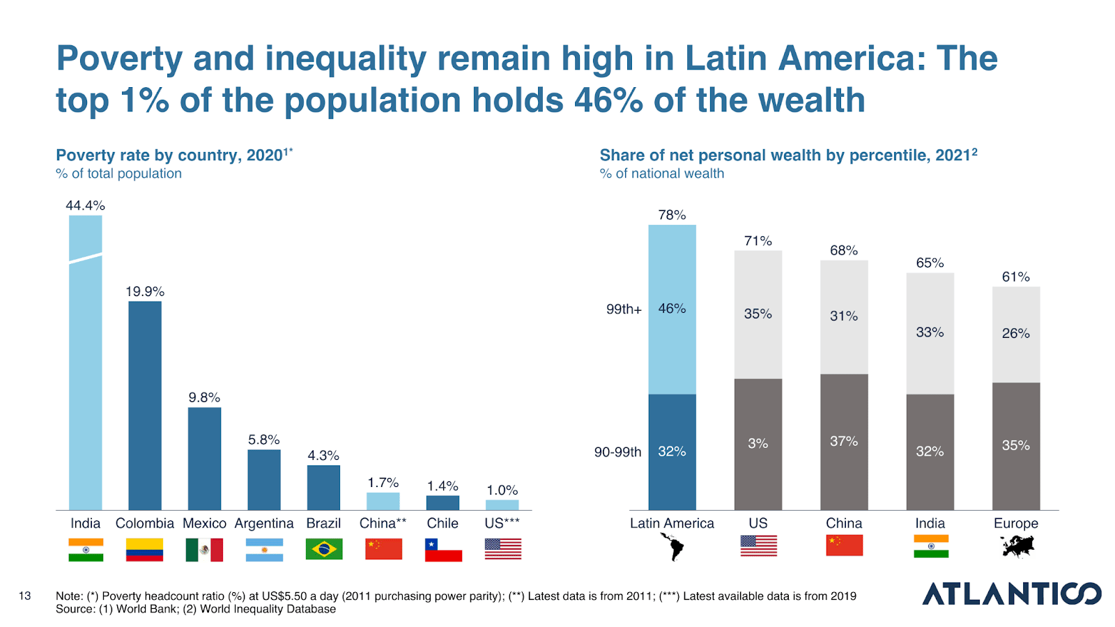 The top 1% of Latam’s population holds 46% of the wealth. Check out this and more key stats in Atlantico’s 2022 Latin America Digital Transformation Report.