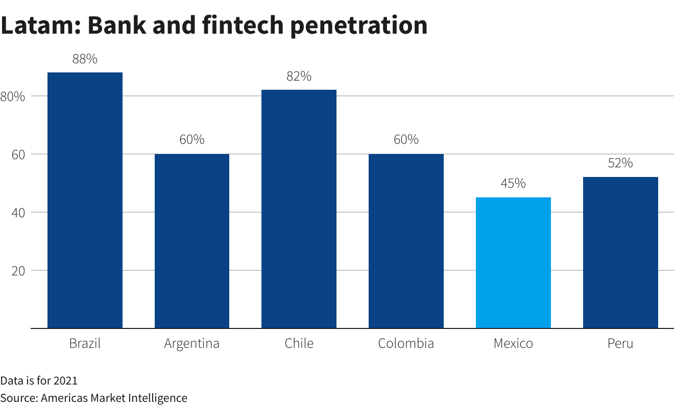 Despite the fintech boom in Mexico and the advent of the fintech law in 2018, financial inclusion has gotten worse: cash still represents 90% of transactions under USD $25 while the number of adults with bank accounts hovers at 49.1%.