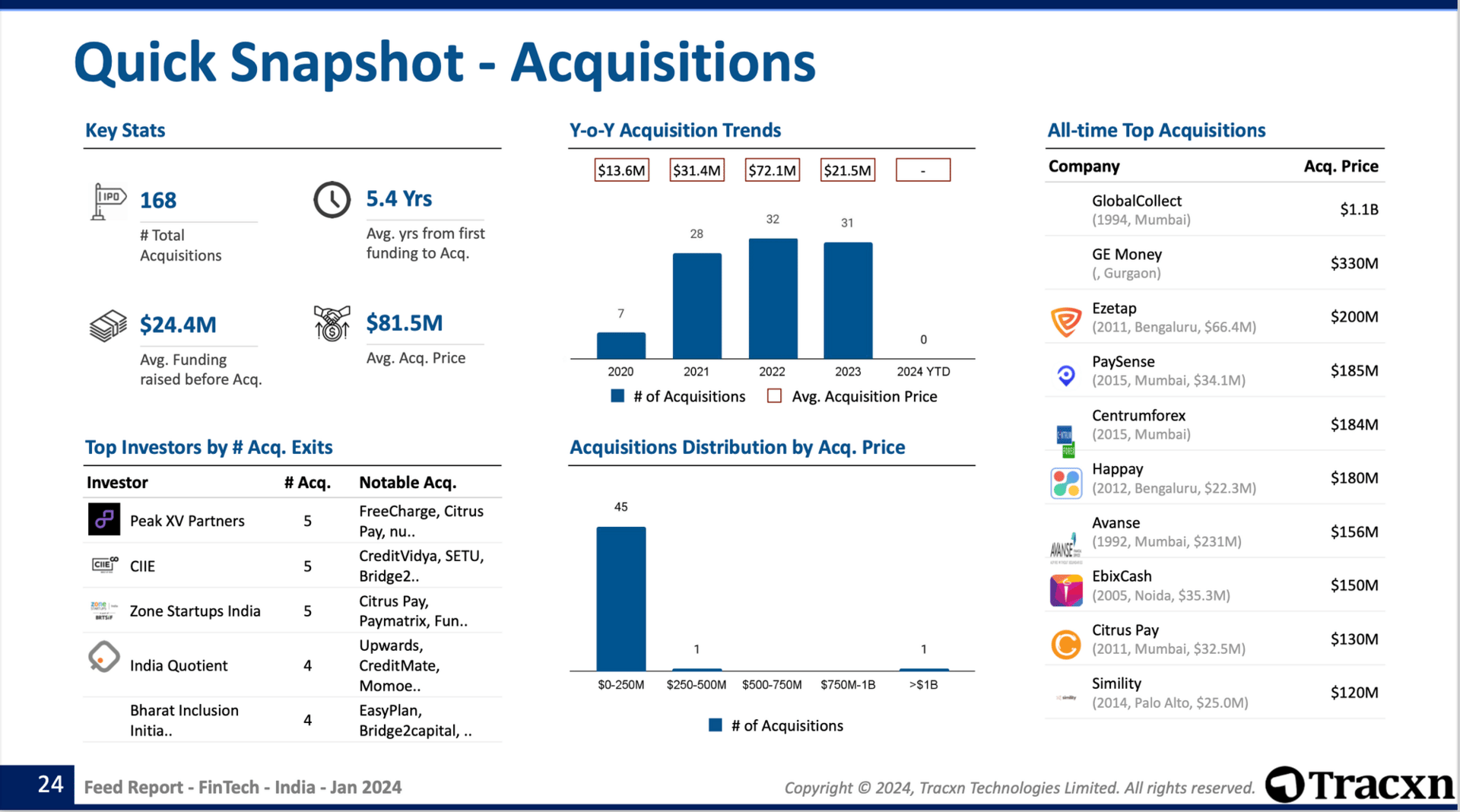 Funding in Indian fintech sector declined 57% YoY to $571mm in Q1 2024.
