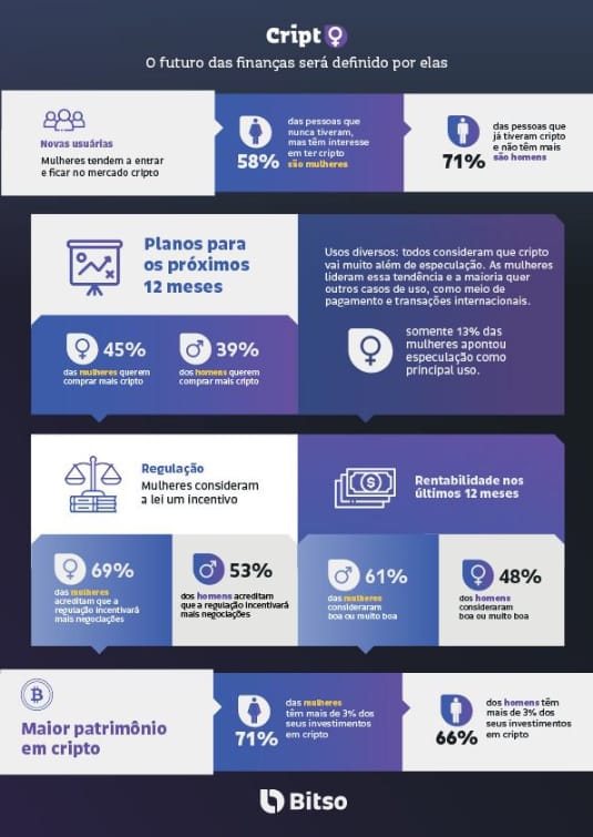 In Brazil, 66% of cryptocurrency investors are men. However, women show a strong interest in crypto, with 71% of female investors allocating more than 3% of their investment portfolio to crypto. Source