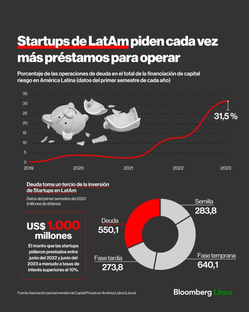 Latam startups seek more loans to sustain operations, with 31.5% of Q1-2023 venture capital funding acquired through debt. During the same period, $6.3 billion was invested in venture capital across 452 transactions, marking a 63.3% decline from Q1-2022. (Source)