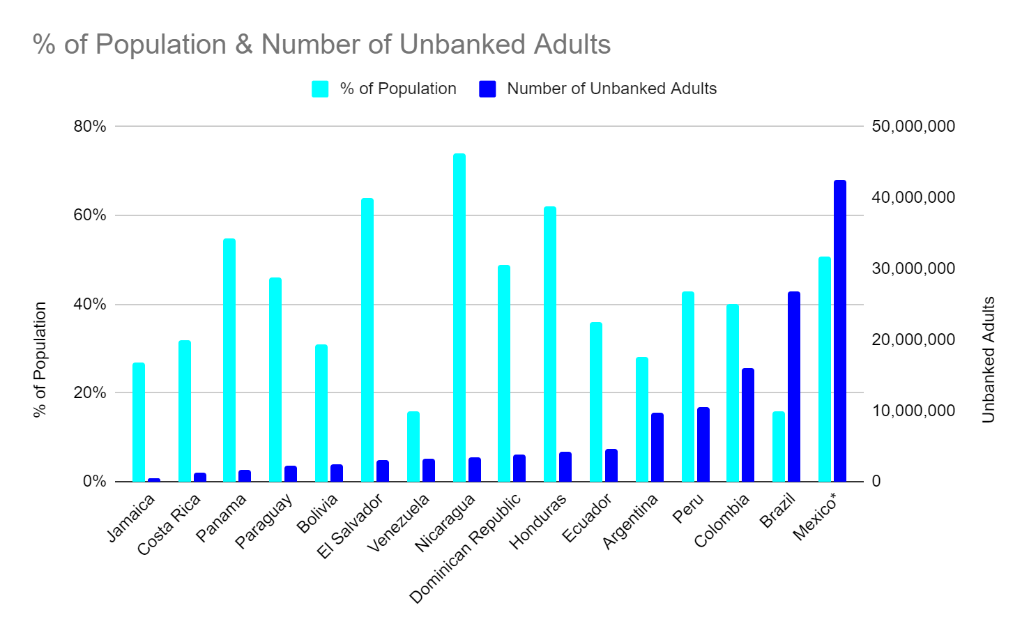 In fact, if the World Bank’s 2021 Global Findex had included Mexico, Mexico would likely have had the largest unbanked population in the region, surpassing Brazil by over 15 million people.