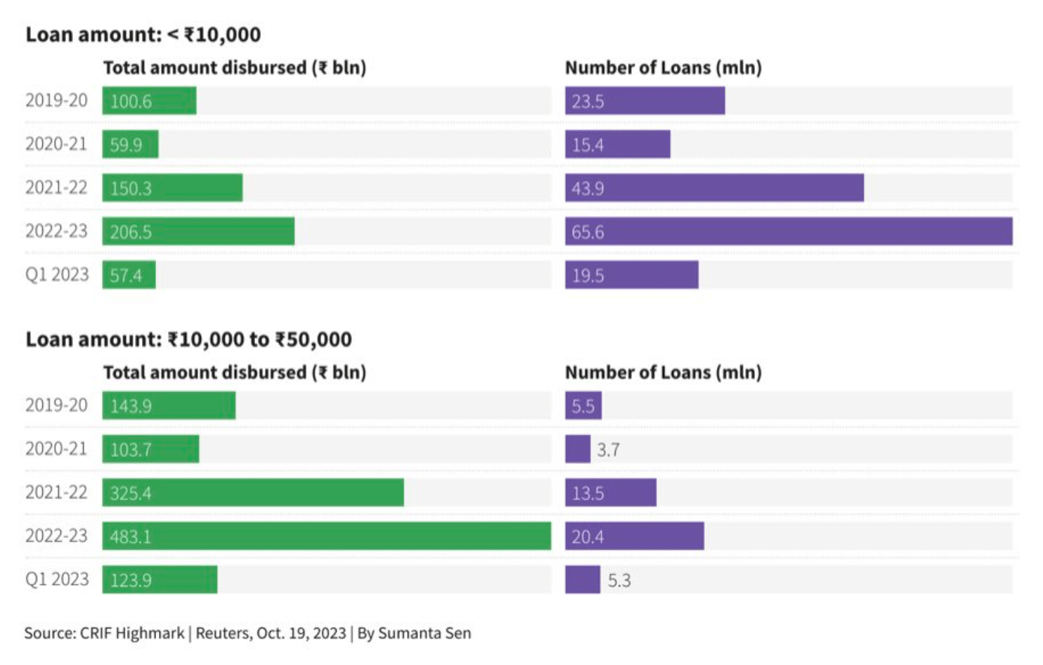 KreditBeereported INR 14,000cr ($1.7bn) in gross loans disbursed on its platform in 2023 (+2x YoY).